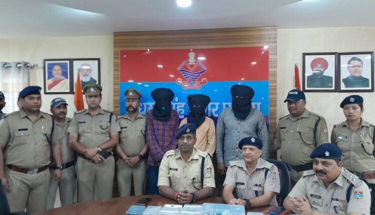 रूद्रपुर। जिले में खटीमा, पुलभट्टा और ट्रांजिट कैम्प पुलिस ने तीन नशा तस्करों को लाखों रूपये की स्मैक के साथ गिरफ्तार किया है, एक तस्कर से नशे के प्रतिबंधित इंजेक्शन भी बरामद हुए हैं। पुलभट्टा पुलिस की गिरफ्त में एक सट्टा कारोबारी भी आया है। खटीमा की मझौला चौकी क्षेत्र में पकड़ी गयी 104.10 ग्राम स्मैक के मामले का खुलासा करते हुए एसएसपी मंजूनाथ टिसी ने बताया कि नशे के विरुद्ध चलाये जा रहे अभियान के तहत मुखबिर की सूचना पर राधा स्वामी सत्संग के सामने ग्राम बनगवां थाना खटीमा निवासी विक्रम सिंह उर्फ विक्की पुत्र कश्मीर सिंह के कब्जे से 104.10 ग्राम स्मैक और इलेक्ट्रॉनिक पॉकेट तराजू बरामद किया गया।गिरफ्तार अभियुक्त विक्रम सिंह उपरोक्त के विरुद्ध 167 23 धारा 8ः21 एनडीपीएस एक्ट पंजीकृत किया गया है। एसएसपी ने बताया किआरोपी को एनपीपीएस कोर्ट रुद्रपुर में पेश कर न्यायिक रिमांड पर लिया जायेगा। आरोपी को पकड़ने वाली टीम में मझौला चौकी इंचार्ज उपनिरीक्षक संदीप पिलख्वाल, कांस्टेबल हरेन्द्र सिंह, बिपिन सिंह, रवि कुमार आदि शामिल थे। उधर पुलभट्टा में स्मैक तस्कर और सट्टा कारोबारी की गिरफ्तारी के मामले का खुलासा करते हुए एसपी सिटी मनोज कत्याल ने बताया कि मादक पदार्थों की तस्करी और सट्टे के खिलाफ चलाये जा रहे अभियान के तहत पुलिस ने थाना पुलभट्टा मन्दिर से 50 कदम आगे बहेडी रोड पर शकील सलमानी उर्फ गुîóू उर्फ नन्हे पुत्र शब्बीर सलमानी निवासी वार्ड न0 11 सुनहरी थाना किच्छा को 6 ग्राम स्मैक और 25 इंजेक्शन एविल, लाईटर डिस्पोजल सीरिंज, मोबाईल और 840 रूपये की नगदी साथ गिरफ्तार कर लिया। पूछताछ में अभियुक्त ने बताया कि खुद इंजेक्शन का नशा करने का आदि है और बहेड़ी बाजार से एक मेडिकल स्टोर से उक्त इंजेक्शन और स्मैक बेचने हेतु लेकर आया था। नशा करने के तरीके के बारे में पूछने पर शकील ने बताया कि वह लोग एविल के इंजेक्शन में हल्की स्मैक डालकर उसे गर्म कर सिरेन्ज के माध्यम से खुद अपने हाथ की नशों में उक्त नशा लेते है, स्मैक की 1 बीट व एविल की 1 शीशी 500 रूपये के हिसाब से किच्छा और पुलभट्टा क्षेत्र में बेचते है। वहीं पुलिस ने सिरौलीकला क्षेत्र मे अभियुक्त इलियास अंसारी पुत्र फिदा हुसैन उन 32 वर्ष निवासी बार्ड न019 सिरौलीकला थाना पुलभट्टा जिला उधमसिंहनगर को सट्टे की खाई बाडी करते हुए 1970 रुपये नकद सट्टा पर्ची और मोबाईल के साथ गिरफ्तार कर लिया। पूछताछ में इलियास ने बताया कि वह सट्टा लेकर आगे नसीम उर्फ चटनी निवासी सिरौलीकला तथा इकरार निवासी किच्छा सिनेमा हॉल को देता है। गिरफ्तार अभियुक्तगणों को न्यायालय पेश किया गया जहां से उन्हें जेल भेज दिया गया। आरोपियों को पकड़ने वाली टीम में थानाध्यक्ष कमलेश भटट, उपनिरीक्षक दीपा अधिकारी,