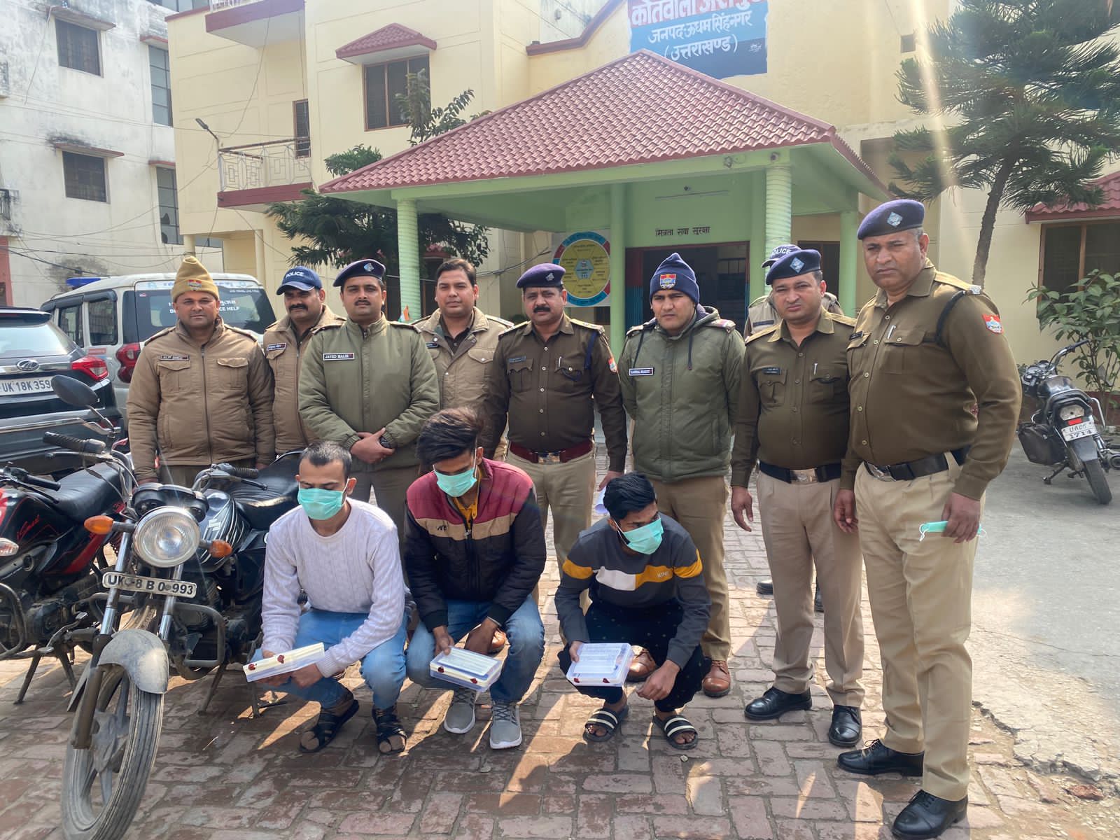पुलिस ने वादियों की तहरीर के आधार पर उक्त घटनाओं के आधार पर धारा 356/379 भा0द0वि0 अज्ञात व्यक्तियों के खिलाफ मुकदमा पंजीकृत किया था । वरिष्ठ पुलिस अधीक्षक मंजूनाथ टीसी के आदेशानुसार व पुलिस अधीक्षक काशीपुर क्षेत्राधिकारी काशीपुर के निर्देशन में कोतवाली प्रभारी निरीक्षक आशुतोष कुमार सिंह जसपुर के नेतृत्व में 4 टीमों का गठन कर घटना के अनावरण हेतू आदेशित किया गया था। पुलिस ने घटनास्थल के आसपास के सीसीटीवी कैमरा का अवलोकन किया। सोमवार को मुखबिर की सूचना पर मंडवाखेड़ा कट के पास भगवन्तपुर रोड जसपुर से तीन युवकों को विरासत में लेकर पूछताछ की गई। तो तीनों युवकों ने अपने नाम कशान पुत्र मोहम्मद हसीब निवासी आवास विकास कॉलोनी मो. उस्मान पुत्र शाहिद हुसैन निवासी मोहल्ला छीपियांन अंसारी वाली गली ,मो. फैसल पुत्र मो. हनीफ निवासी मोहल्ला छीपियांन हाथे वाली गली जसपुर बताएं पुलिस ने बताया कि गैंग लीडर काशान के समेत तीन युवकों को गिरफ्तार कर इनके कब्जे से झपट्टा मारकर चोरी किये गये 3 मोबाईल फोन व घटना में प्रयुक्त 2 अद्द मोटरसाईकिलें बरामद कर मुकदमा उपरोक्त में धारा 411/34 भा0द0वि0 की बढोतरी की गई । पुलिस ने बताया कि गैंग लीडर काशान शातिर किस्म का अपराधी है जो पूर्व में मोबाइल चोरी में थाना ठाकुरद्वारा से जेल जा चुका है झपट्टा मार आरोपी को गिरफ्तार करने में प्रभारी निरीक्षक आशुतोष कुमार सिंह, उ0नि0 कौशल भाकुनी ,उ0नि0 जावेद मलिक, उ0नि0 धीरज टम्टा, उ0नि0 ललित सिंह, उ0नि0 हरीश आर्य, का0 अनुज वर्मा,का0 जमशेद अली, का0 राजकुमार, का0 नवीन प्रकाश, का0 बच्ची सिंह , का0 राजकुमार आदि पुलिसकर्मी मौजूद रहे।