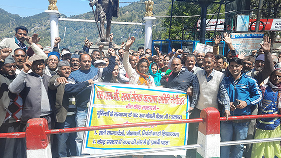 नैनीताल। एसएसबी स्वयं सेवक कल्याण समिति द्वारा नौकरी पेंशन एवं अन्य सुविधाओं की मांग को लेकर तल्लीताल डाँठ में एकत्रित होकर सरकार के खिलाफ जमकर नारेबाजी की। इस दौरान मांग पूरी न होने पर चार धाम यात्रा व 4 मई से प्रस्तावित कैलाश मानसरोवर यात्रा का विरोध करने की चेतावनी दी है।