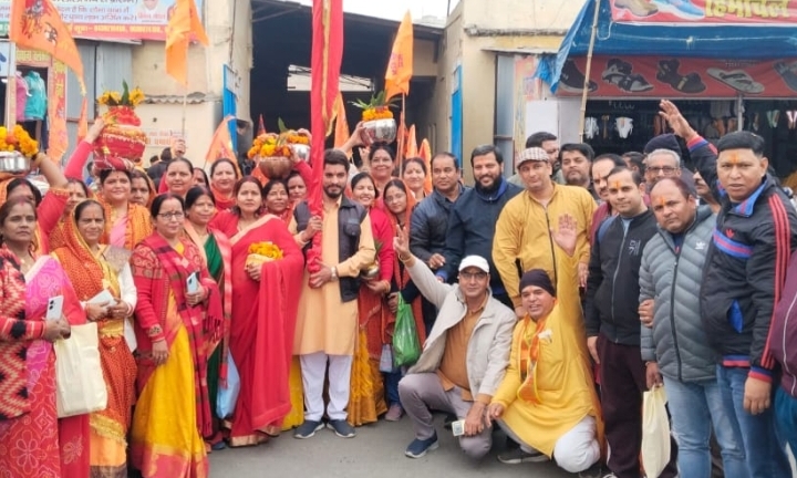 श्री राम मंदिर प्राण प्रतिष्ठा निमंत्रण अभियान समिति के संयोजक सचिन चावला की अगुवाई में नगर में एक विशाल शोभायात्रा निकाली गई। शोभायात्रा एमपी चौक, मुख्य बाजार होते हुए डीडी चौक पहुंची, जहां शोभायात्रा के स्वागत के बाद यात्रा समाप्त हो गई शोभायात्रा में शामिल वार्डों समितियां अपने अपने वार्डों के लिए रवाना हो गई। इस अवसर पर शोभायात्रा में आए श्रद्धालुओं को संबोधित करते हुए कार्यक्रम के संयोजक सचिन चावला ने कहा कि प्रस्तावित कार्यक्रम के अनुसार आज नगर के सभी वार्डों की समितियों को अक्षत कलश वितरण कर दिये, जो अपने अपने वार्डों के प्रत्येक सनातनी घर घर तक पहुंचाने जिम्मेदारी निभायेगा । सचिन चावला ने कहा कि 10 जनवरी तक शहर के प्रत्येक सनातनी घर तक अक्षत वितरित हो जाएंगे, इसके साथ ही 11 जनवरी से 20 जनवरी तक श्री रामायण पाठ, सुंदरकांड पाठ, हनुमान चालीसा पाठ सहित अन्य धार्मिक कार्य किये जाएंगे। और आने वाली 22 जनवरी को अयोध्या ही नहीं बल्कि पूरे देश में महा दीपावली मनाई जाएगी। शोभायात्रा में भाजपा नेता किशन गोयल द्वारा प्रसाद वितरण किया गया। शोभायात्रा में श्री राम अक्षत कलश यात्रा के जिला संयोजक मुकेश पारिख, आरएसएस जिला कार्यवाह समयपाल, नगर संघचालक संजय जुनेजा, नगर कार्यवाह कमल भाटिया, पंडित अरुणेश मिश्रा, पं0 गौरव मिश्रा,दीपक पाठक, भुवन जोशी, भगत सिंह, दिनेश भाटिया, सुभाष तनेजा, विवेकदीप सिंह, किशन गोयल, श्रीकांत राठौर,राजीव सक्सेना, हंसी बिष्ट, विशाल शर्मा, चंदन जायसवाल,रोहित शर्मा, भूपेंद्र सिंह, परमजीत वर्मा,धनीराम, गौतम कोली, जानकी तिवारी, लता सिंह,दया डसीला सहित सैकड़ों श्रद्धालु आदि थे।