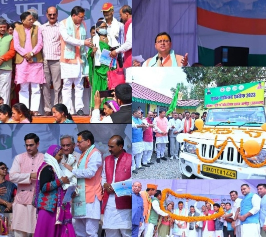 अल्मोड़ा। मुख्यमंत्री  पुष्कर सिंह धामी ने कल अल्मोड़ा में पूर्व मुख्यमंत्री स्व. हेमवती नन्दन बहुगुणा की 104वीं जयंती पर जनसेवा आधारित बहुद्देशीय शिविर एवं कृषक महोत्सव कार्यक्रम में प्रतिभाग करते हुए 256.75 करोड़ की विभिन्न विकास योजनाओं का शिलान्यास एवं लोकार्पण किया।