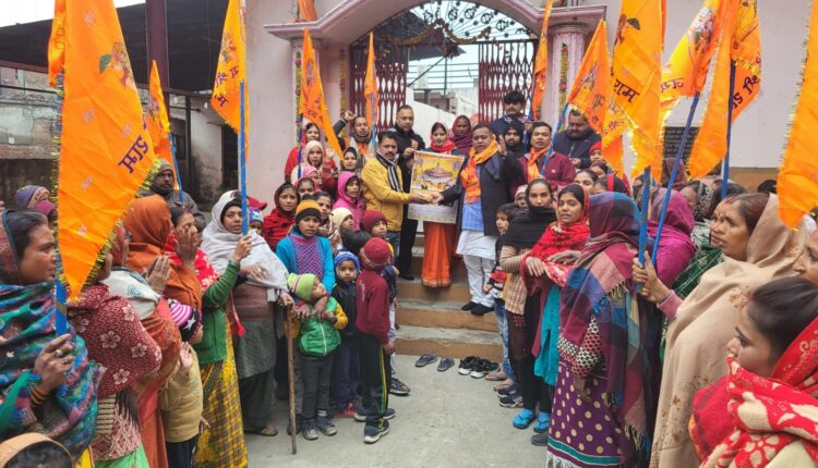 रुद्रपुर। भाजपा आर्थिक प्रकोष्ठ के प्रदेश सह संयोजक और रामभक्त भारत भूषण चुघ ने खेड़ा के दर्जनों लोगों के साथ आज संतोषी देवी मंदिर से पूजा सामग्री व कैलेंडर वितरण का अभियान प्रारंभ किया। सबसे पहले उन्होंने संतोषी देवी मंदिर पहुंचकर माथा टेका और प्रभु श्री राम के जयकारों के साथ अपना पूजा सामग्री वितरण कार्यक्रम प्रारंभ किया। उन्होंने कहा कि 22 जनवरी को अयोध्या में प्रभु रामलला की प्राण प्रतिष्ठा का समारोह होना है इस भव्य और दिव्य समारोह को लेकर करोड़ों लोगों में उत्साह की लहर है और हर कोई राम भक्त इस ऐतिहासिक पल का साक्षी बनेगा। ऐसे में वह शहर की समस्त मलिन बस्तियों में 22 जनवरी तक पूजा सामग्री एवं कैलेंडर वितरण का कार्यक्रम जारी रखेंगे।