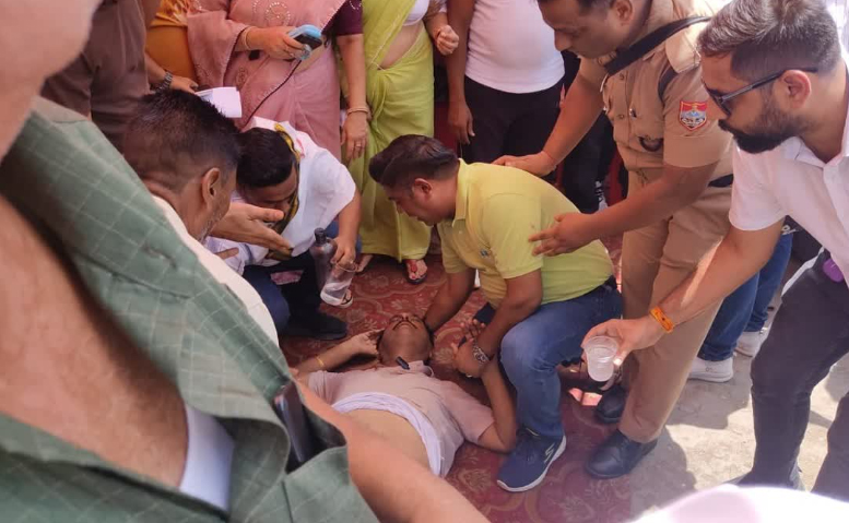 धरना स्थल पर भाषण देते अचानक बेहोश हो गये विधायक बेहड़ बेहोश, मचा हड़कम्प